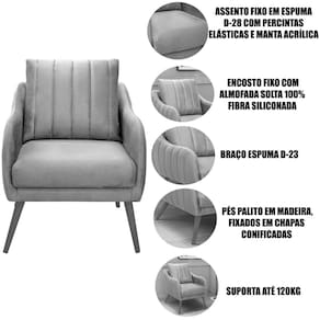 - Encosto fixo com almofada solta 100% fibra siliconada;