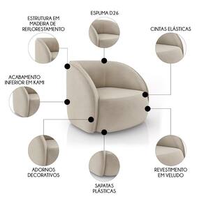 A Poltrona para Sala Orgânica 90cm Zion M22 Veludo Bege, da Mpozenato, é a solução perfeita para quem busca unir conforto, durabilidade e estilo em um só móvel.