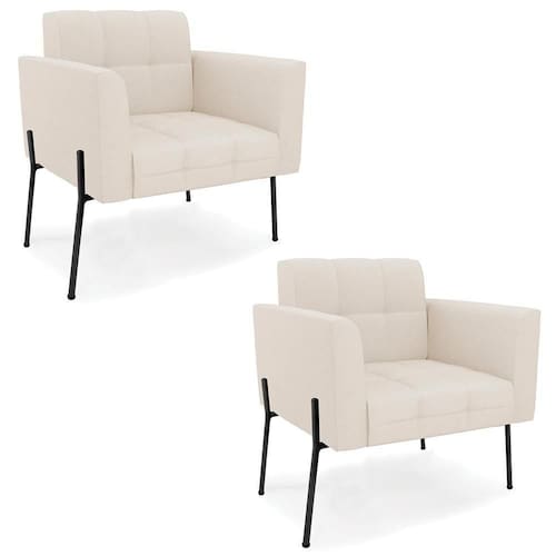 Você está procurando um Kit Poltrona que combine com a sua Sala De Estar, recepção ou seu quarto, que ofereça conforto e qualidade? Então você vai adorar a Poltrona Para Sala Pé Metal Preto Kit 2 Ana Linho Bege, da Ibiza!