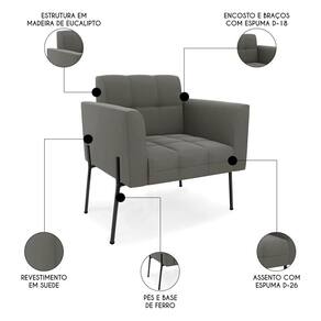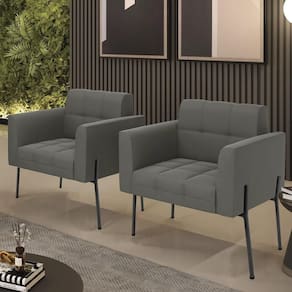 Você está procurando um Kit Poltrona que combine com a sua Sala De Estar, recepção ou seu quarto, que ofereça conforto e qualidade? Então você vai adorar a Poltrona Para Sala Pé Metal Preto Kit 2 Ana Suede Grafite, da Ibiza!