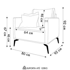 A Poltrona Decorativa tem os pés de aço e acabamento elegante na cor preta, ela oferece não apenas estabilidade, mas também um toque de sofisticação ao ambiente assim como o seu revestimento em linho. O assento, feito com espuma HR28 e plumante de silicone, promete ser o refúgio perfeito após um longo dia, enquanto as duas almofadas decorativas complementam o visual com um charme adicional. A durabilidade é assegurada pela estrutura de madeira maciça de eucalipto, e o encosto em almofada solta com fibra de silicone se adapta perfeitamente ao corpo, proporcionando uma experiência de relaxamento inigualável. Esta Poltrona Para Sala não é apenas um móvel, mas um investimento em bem-estar e estilo para a sua Sala de Estar.