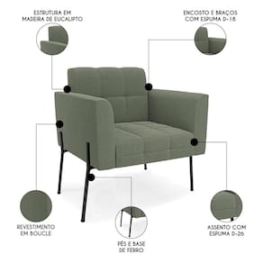 Você está procurando uma poltrona que combine com a sua Sala De Estar, recepção ou seu quarto, que ofereça conforto e qualidade? Então você vai adorar a Poltrona Para Sala Pés Metálicos Preto Ana Bouclé Menta, da Ibiza!