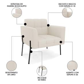 Você está procurando uma poltrona que combine com a sua Sala De Estar, recepção ou seu quarto, que ofereça conforto e qualidade? Então você vai adorar a Poltrona Para Sala Pés Metálicos Preto Ana Linho Bege, da Ibiza!