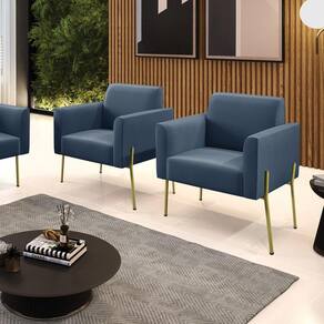 Todo mundo gosta de um ambiente bem decorado, e se for novidade melhor ainda não é mesmo? A D'Rossi, além de entregar beleza, qualidade e confiança aos clientes, ela dispõe das melhores opções em produtos, disponíveis no mercado! Portanto, se você quer um produto sofisticado, opte pela Poltrona Marisa. Ela possui um design lindo e sofisticado, com pés de Ferro Lateral Dourado e revestimento em tecido Suede Azul Marinho, que harmonizam com qualquer ambiente. Esta mobília fica perfeita na sala de estar, recepções, mesa de jantar ou qualquer outro espaço que você queira decorar com estilo e bom gosto. Ela contém uma estrutura em madeira de reflorestamento eucalipto, que garante a resistência e a sustentabilidade do produto. Ela suporta até 120 kg de peso, podendo ser utilizada por pessoas de diferentes biotipos. Ela tem um acabamento reforçado e espuma de qualidade D-23, garantindo flexibilidade e conforto ao usuário. A Poltrona Marisa é um produto de alta qualidade, beleza e funcionalidade. Ela é fácil de transportar, pois tem um peso leve e um tamanho compacto. A Poltrona Marisa é ideal, para dar aquele realce que seu ambiente precisa. Tenho certeza que esse móvel é a melhor compra que você irá fazer. Garanta já seu kit 2 Poltronas Marisa e se acomode da melhor maneira possível!