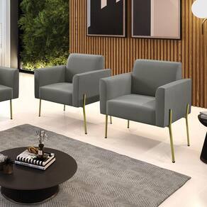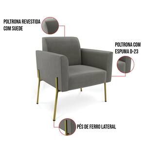 Poltrona Pé de Ferro Dourado Decorativa Kit 2 Marisa Suede D03 - D`Rossi - Grafite