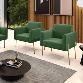 Todo mundo gosta de um ambiente bem decorado, e se for novidade melhor ainda não é mesmo? A D'Rossi, além de entregar beleza, qualidade e confiança aos clientes, ela dispõe das melhores opções em produtos, disponíveis no mercado! Portanto, se você quer um produto sofisticado, opte pela Poltrona Marisa. Ela possui um design lindo e sofisticado, com pés de Ferro Lateral Dourado e revestimento em tecido Suede Verde, que harmonizam com qualquer ambiente. Esta mobília fica perfeita na sala de estar, recepções, mesa de jantar ou qualquer outro espaço que você queira decorar com estilo e bom gosto. Ela contém uma estrutura em madeira de reflorestamento eucalipto, que garante a resistência e a sustentabilidade do produto. Ela suporta até 120 kg de peso, podendo ser utilizada por pessoas de diferentes biotipos. Ela tem um acabamento reforçado e espuma de qualidade D-23, garantindo flexibilidade e conforto ao usuário. A Poltrona Marisa é um produto de alta qualidade, beleza e funcionalidade. Ela é fácil de transportar, pois tem um peso leve e um tamanho compacto. A Poltrona Marisa é ideal, para dar aquele realce que seu ambiente precisa. Tenho certeza que esse móvel é a melhor compra que você irá fazer. Garanta já seu kit 2 Poltronas Marisa e se acomode da melhor maneira possível!