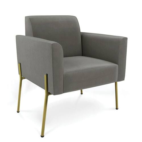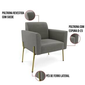 Poltrona Pé De Ferro Dourado Decorativa Marisa Suede D03 - D'rossi Cor Grafite