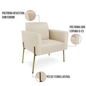 Poltrona Pé de Ferro Dourado Kit 2 para Sala Marisa Corino D03 - D`Rossi - Bege