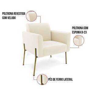 Todo mundo gosta de um ambiente bem decorado, e se for novidade melhor ainda não é mesmo? A D'Rossi, além de entregar beleza, qualidade e confiança aos clientes, ela dispõe das melhores opções em produtos, disponíveis no mercado! Portanto, se você quer um produto sofisticado, opte pela Poltrona Marisa. Ela possui um design lindo e sofisticado, com pés de Ferro Lateral Dourado e revestimento em tecido Veludo, que harmonizam com qualquer ambiente. Esta mobília fica perfeita na sala de estar, recepções, mesa de jantar ou qualquer outro espaço que você queira decorar com estilo e bom gosto. Ela contém uma estrutura em madeira de reflorestamento eucalipto, que garante a resistência e a sustentabilidade do produto. Ela suporta até 120 kg de peso, podendo ser utilizada por pessoas de diferentes biotipos. Ela tem um acabamento reforçado e espuma de qualidade D-23, garantindo flexibilidade e conforto ao usuário. A Poltrona Marisa é um produto de alta qualidade, beleza e funcionalidade. Ela é fácil de transportar, pois tem um peso leve e um tamanho compacto. A Poltrona Marisa é ideal, para dar aquele realce que seu ambiente precisa. Tenho certeza que esse móvel é a melhor compra que você irá fazer. Garanta já sua Poltrona Marisa e se acomode da melhor maneira possível!