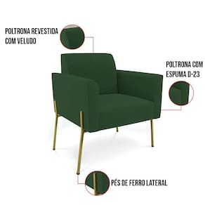 Todo mundo gosta de um ambiente bem decorado, e se for novidade melhor ainda não é mesmo? A D'Rossi, além de entregar beleza, qualidade e confiança aos clientes, ela dispõe das melhores opções em produtos, disponíveis no mercado! Portanto, se você quer um produto sofisticado, opte pela Poltrona Marisa. Ela possui um design lindo e sofisticado, com pés de Ferro Lateral Dourado e revestimento em tecido Veludo, que harmonizam com qualquer ambiente. Esta mobília fica perfeita na sala de estar, recepções, mesa de jantar ou qualquer outro espaço que você queira decorar com estilo e bom gosto. Ela contém uma estrutura em madeira de reflorestamento eucalipto, que garante a resistência e a sustentabilidade do produto. Ela suporta até 120 kg de peso, podendo ser utilizada por pessoas de diferentes biotipos. Ela tem um acabamento reforçado e espuma de qualidade D-23, garantindo flexibilidade e conforto ao usuário. A Poltrona Marisa é um produto de alta qualidade, beleza e funcionalidade. Ela é fácil de transportar, pois tem um peso leve e um tamanho compacto. A Poltrona Marisa é ideal, para dar aquele realce que seu ambiente precisa. Tenho certeza que esse móvel é a melhor compra que você irá fazer. Garanta já sua Poltrona Marisa e se acomode da melhor maneira possível!