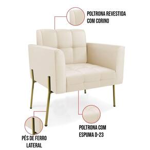 Você gosta de colecionar vários momentos memoráveis com sua família e amigos? Que tal recebê-los, com móveis de altíssima qualidade que só a D'Rossi tem? A Poltrona Elisa é adequada para você! Seu design retrô é a grande tendência do momento. Pode ser usada em diversos espaços da casa, em salas, hall de entrada, quartos, cozinhas, varanda, sacada, escritório, dentre outros. Contém as seguintes características: A estrutura é feita Madeira de Eucalipto 100% de reflorestamento, Pés de Ferro Dourado que além de ser resistente e durável, suporta em média até 120 kg. Assento, encosto e braços, contém enchimento de espuma D-23 e é estofada em tecido Corino, que oferece muito conforto e resistência ao sentar, com aquela sensação de maciez e aconchego. Possui também, detalhes de costura no encosto e assento, resultando em um acabamento impecável, conferindo muito mais valor e elegância ao seu espaço. Para complementar a decoração com essa linda poltrona, a dica é utilizar mantas, almofadas ou vasinho de flor. E pronto, seu cantinho estará perfeito para descansar e relaxar! Aqui, você encontra várias opções, para que seus amigos e familiares se sintam acolhidos. Garanta já sua Poltrona.