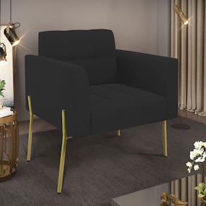 Você gosta de colecionar vários momentos memoráveis com sua família e amigos? Que tal recebê-los, com móveis de altíssima qualidade que só a D'Rossi tem? A Poltrona Elisa é adequada para você! Seu design retrô é a grande tendência do momento. Pode ser usada em diversos espaços da casa, em salas, hall de entrada, quartos, cozinhas, varanda, sacada, escritório, dentre outros. Contém as seguintes características: A estrutura é feita Madeira de Eucalipto 100% de reflorestamento, Pés de Ferro Dourado que além de ser resistente e durável, suporta em média até 120 kg. Assento, encosto e braços, contém enchimento de espuma D-23 e é estofada em tecido Veludo no tom Preto, que oferece muito conforto e resistência ao sentar, com aquela sensação de maciez e aconchego. Possui também, detalhes de costura no encosto e assento, resultando em um acabamento impecável, conferindo muito mais valor e elegância ao seu espaço. Para complementar a decoração com essa linda poltrona, a dica é utilizar mantas, almofadas ou vasinho de flor. E pronto, seu cantinho estará perfeito para descansar e relaxar! Aqui, você encontra várias opções, para que seus amigos e familiares se sintam acolhidos. Garanta já sua Poltrona.