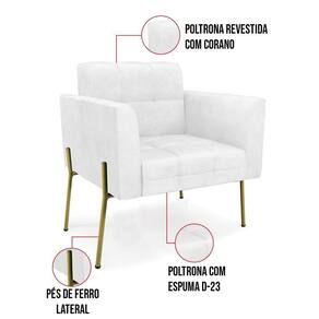 Você gosta de colecionar vários momentos memoráveis com sua família e amigos? Que tal recebê-los, com móveis de altíssima qualidade que só a D'Rossi tem? A Poltrona Elisa é adequada para você! Seu design retrô é a grande tendência do momento. Pode ser usada em diversos espaços da casa, em salas, hall de entrada, quartos, cozinhas, varanda, sacada, escritório, dentre outros. Contém as seguintes características: A estrutura é feita Madeira de Eucalipto 100% de reflorestamento, Pés de Ferro Dourado que além de ser resistente e durável, suporta em média até 120 kg. Assento, encosto e braços, contém enchimento de espuma D-23 e é estofada em tecido Corano, que oferece muito conforto e resistência ao sentar, com aquela sensação de maciez e aconchego. Possui também, detalhes de costura no encosto e assento, resultando em um acabamento impecável, conferindo muito mais valor e elegância ao seu espaço. Para complementar a decoração com essa linda poltrona, a dica é utilizar mantas, almofadas ou vasinho de flor. E pronto, seu cantinho estará perfeito para descansar e relaxar! Aqui, você encontra várias opções, para que seus amigos e familiares se sintam acolhidos. Garanta já seu Kit 2 Poltronas..