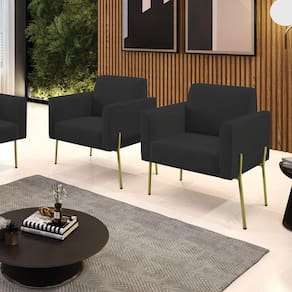 Todo mundo gosta de um ambiente bem decorado, e se for novidade melhor ainda não é mesmo? A D'Rossi, além de entregar beleza, qualidade e confiança aos clientes, ela dispõe das melhores opções em produtos, disponíveis no mercado! Portanto, se você quer um produto sofisticado, opte pela Poltrona Marisa. Ela possui um design lindo e sofisticado, com pés de Ferro Lateral Dourado e revestimento em tecido Veludo Preto, que harmonizam com qualquer ambiente. Esta mobília fica perfeita na sala de estar, recepções, mesa de jantar ou qualquer outro espaço que você queira decorar com estilo e bom gosto. Ela contém uma estrutura em madeira de reflorestamento eucalipto, que garante a resistência e a sustentabilidade do produto. Ela suporta até 120 kg de peso, podendo ser utilizada por pessoas de diferentes biotipos. Ela tem um acabamento reforçado e espuma de qualidade D-23, garantindo flexibilidade e conforto ao usuário. A Poltrona Marisa é um produto de alta qualidade, beleza e funcionalidade. Ela é fácil de transportar, pois tem um peso leve e um tamanho compacto. A Poltrona Marisa é ideal, para dar aquele realce que seu ambiente precisa. Tenho certeza que esse móvel é a melhor compra que você irá fazer. Garanta já seu kit 2 Poltronas Marisa e se acomode da melhor maneira possível!