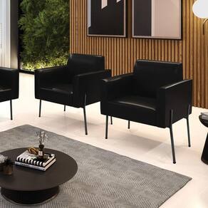 Poltrona Pé de Ferro Preto Kit 2 para Sala Marisa Corano D03 - D`Rossi