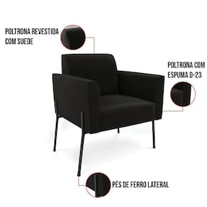 Poltrona Pé De Ferro Preto Para Sala Elisa Suede - D'rossi Cor Preto