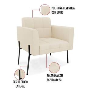 Você gosta de colecionar vários momentos memoráveis com sua família e amigos? Que tal recebê-los, com móveis de altíssima qualidade que só a D'Rossi tem? A Poltrona Elisa é adequada para você! Seu design retrô é a grande tendência do momento. Pode ser usada em diversos espaços da casa, em salas, hall de entrada, quartos, cozinhas, varanda, sacada, escritório, dentre outros. Contém as seguintes características: A estrutura é feita Madeira de Eucalipto 100% de reflorestamento, Pés de Ferro Preto que além de ser resistente e durável, suporta em média até 120 kg. Assento, encosto e braços, contém enchimento de espuma D-23 e é estofada em tecido Linho, que oferece muito conforto e resistência ao sentar, com aquela sensação de maciez e aconchego. Possui também, detalhes de costura no encosto e assento, resultando em um acabamento impecável, conferindo muito mais valor e elegância ao seu espaço. Para complementar a decoração com essa linda poltrona, a dica é utilizar mantas, almofadas ou vasinho de flor. E pronto, seu cantinho estará perfeito para descansar e relaxar! Aqui, você encontra várias opções, para que seus amigos e familiares se sintam acolhidos. Garanta já seu Kit 2 Poltronas..