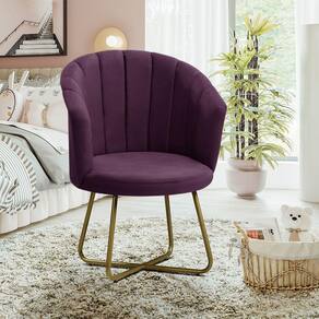 Poltrona Pérola Base de Metal Dourada Veludo - Star Confort - Roxo