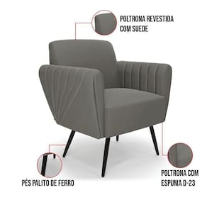 Só aqui na DRossi você encontra a decoração que você merece, com a praticidade que você precisa! A Poltrona Bruna é uma peça de mobiliário moderna e elegante que pode ser usada em uma variedade de ambientes! Fica perfeita na sala, escritório, quarto, varanda coberta e onde mais preferir! Uma poltrona super reforçada, que possui uma estrutura em madeira de reflorestamento, ideal para garantir mais segurança e comodidade ao usuário. Revestida no Suede Grafite, seu estofamento é feito em espuma D-23 um material de alta qualidade, ideal para deixar o assento firme e mais resistente. Os pés palito de ferro adicionam um toque moderno e elegante à poltrona, oferecendo maior segurança e um visual de enriquecer qualquer espaço. Além do mais, a braças da poltrona possui detalhes sutis e discretos com frisos no tecido, que oferecem uma aparência extremamente sofisticada à peça. A Poltrona Bruna é uma excelente opção para quem deseja adicionar um toque de estilo e luxuosidade a qualquer cômodo. Se você está procurando por um móvel confortável e elegante, esta poltrona é a escolha perfeita para você.