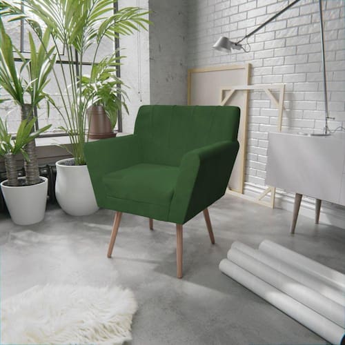 - As imagens ambientadas são meramente ilustrativas e podem apresentar itens que não compõe o produto; - Objetos decorativos que aparecem na foto não acompanham o produto; - As cores do produto podem variar de acordo com o monitor, a iluminação do ambiente, ou sua percepção visual; - A Poltrona Decorativa Laura chegará montada para você, bastando rosquear os pés; - Confira as dimensões antes da compra e certifique-se de que o produto passará por elevadores, portas e corredores, já que nossa entrega não inclui a subida de lances de escada, ou o lançamento de produtos; - Ao receber seus produtos, verifique no ato do recebimento qualquer dano na embalagem. Caso tenha alguma dano, favor não assinar o comprovante de recebimento (A transportadora tem obrigação de esperar a conferência); - Produto para uso residencial em ambiente interno, não devendo ficar exposto diretamente ao sol, calor e umidades excessivas. Acompanha Almofadas extras: Não Acompanha Puff: Não Almofada do assento: Não Possui Almofada do encosto: Não Possui Altura do assento até o chão: 50 Altura do Encosto: 41 Altura dos Pés: 30 Ambiente Principal: Sala de Estar Complexidade da Montagem: Baixa: pode ser montado por uma pessoa sozinha Cor: Verde Cor do Produto: Verde Design Assinado: Não Enchimento do Assento: Enchimento do Braço: Espuma D-18 Enchimento do Encosto: Espuma D-18 Encosto para a Cabeça: Não Estampado: Não Extensível: Não Firmeza do Assento: Informações Complementares: Itens Inclusos: Poltrona Linha ou Coleção: Manual de Especificação Técnica: Manual de Montagem e Instalação: Material do Braço: Madeira Material dos Pés: Madeira Modelo de Poltrona: Fixo Necessita Montagem: Sim Origem do Produto: Nacional Peso: 12.18 Possui Percintas Elásticas: Não Possui Pés: 04 Possui Rodízio: Não Profundidade quando extendido: Recomendações de Uso, Manutenção e Limpeza: Limpar com flanela limpa e seca. Não molhar o móvel e não expor em lugar úmido ou próximo de fontes de calor. Não usar produtos abrasivos. Resistente à Chuva: Rodízio com Trava: Sistema de Montagem: Encaixe dos pés Suporta Até (kg): 120 Tecido Predominante: Suede Tipo de Assento: Fixo Tipo de Encosto: Fixo Tipo de Espuma do Assento: Tipo de Espuma do Encosto: Tipo de Poltrona: Decorativa Marca: Maranata Estofados