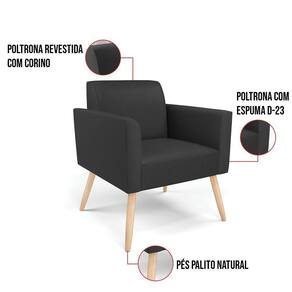 Todo mundo gosta de um ambiente bem decorado, e se for novidade melhor ainda não é mesmo? A D'Rossi, além de entregar beleza, qualidade e confiança aos clientes, ela dispõe das melhores opções em produtos, disponíveis no mercado! Se você quer um produto sofisticado, opte pela Poltrona Marisa. Ela dispõe de um tom lindo no Preto, uma cor leve, neutra e delicada que combina com qualquer estilo de decoração. Esta mobília fica perfeita na sala, escritório, quarto, varanda coberta e onde mais preferir! Sua estrutura é feita em madeira reforçada de eucalipto proveniente de reflorestamento. No assento/encosto contém um revestimento no tecido Corino, com estofamento em espuma prorelax D-23, garantindo maior conforto ao usuário. A sustentação da peça é dada pelos Pés Palito Castanho, garantindo uma resistência melhor, para relaxar o dia todo com mais comodidade. A Poltrona Marisa é ideal, para dar aquele realce que seu ambiente precisa. Tenho certeza que, esse móvel é a melhor compra que você irá fazer. Garanta já sua poltrona e se acomode da melhor maneira possível!