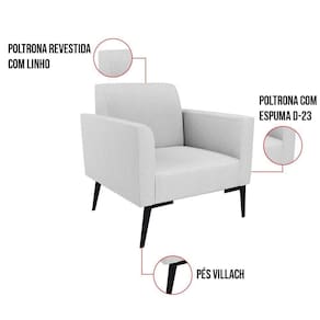 Todo mundo gosta de um ambiente bem decorado, e se for novidade melhor ainda não é mesmo? A DRossi, além de entregar beleza, qualidade e confiança aos clientes, ela dispõe das melhores opções em produtos, disponíveis no mercado! Se você quer um produto sofisticado, opte pela Poltrona Marisa. Ela dispõe de um tom lindo, uma cor leve, neutra e delicada que combina com qualquer estilo de decoração. Esta mobília fica perfeita na sala, escritório, quarto, varanda coberta e onde mais preferir! Sua estrutura é feita em madeira reforçada de eucalipto proveniente de reflorestamento. No assento/encosto contém um revestimento no tecido Linho, com estofamento em espuma prorelax D-23, garantindo maior conforto ao usuário. A sustentação da peça é dada pelos Pés Villach, garantindo uma resistência melhor, para relaxar o dia todo com mais comodidade. A Poltrona Marisa é ideal, para dar aquele realce que seu ambiente precisa. Tenho certeza que, esse móvel é a melhor compra que você irá fazer. Garanta já sua poltrona e se acomode da melhor maneira possível!