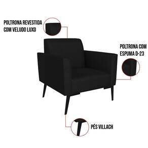Todo mundo gosta de um ambiente bem decorado, e se for novidade melhor ainda não é mesmo? A D'Rossi, além de entregar beleza, qualidade e confiança aos clientes, ela dispõe das melhores opções em produtos, disponíveis no mercado! Se você quer um produto sofisticado, opte pela Poltrona Marisa. Ela dispõe de um tom lindo no Preto, uma cor leve, neutra e delicada que combina com qualquer estilo de decoração. Esta mobília fica perfeita na sala, escritório, quarto, varanda coberta e onde mais preferir! Sua estrutura é feita em madeira reforçada de eucalipto proveniente de reflorestamento. No assento/encosto contém um revestimento no tecido Veludo, com estofamento em espuma prorelax D-23, garantindo maior conforto ao usuário. A sustentação da peça é dada pelos Pés Villach, garantindo uma resistência melhor, para relaxar o dia todo com mais comodidade. A Poltrona Marisa é ideal, para dar aquele realce que seu ambiente precisa. Tenho certeza que, esse móvel é a melhor compra que você irá fazer. Garanta já sua poltrona e se acomode da melhor maneira possível!