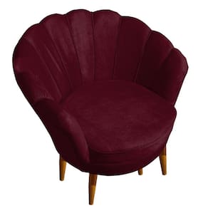 Poltrona Pétala Elegancia Decorativa Com Pés De Madeira Bordo - Bordô