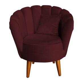 Poltrona Pétala Elegancia Decorativa Com Pés De Madeira Bordo - Bordô