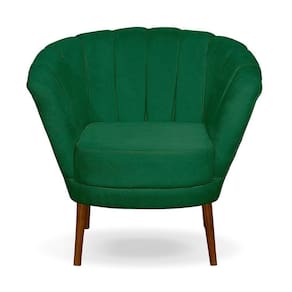 Poltrona Pétala Flor Decorativa Suede Verde - Cinza