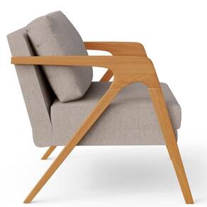 A Poltrona Decorativa Para Sala De Estar Pietra Com Estrutura De Madeira L02 Linho Bege - Lyam Decor se sobressai em qualquer ambiente, permite diversas combinações harmônicas e ainda proporciona muito aconchego. A mistura da estrutura de madeira com o revestimento convencional dela, somados ao seu ar geométrico garantem extrema idade e personalidade para sua decoração.