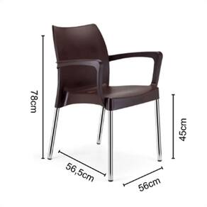 Com braços Material: polipropileno, alumínio Cor: coffee Medidas: 55 x 79 x 42 cm cxaxl Capacidade: 120kg Marca: injeplastec Cód fornecedor: 2917