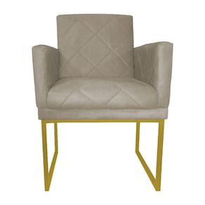 Poltrona Recepção Klara Suede Bege Base Industrial Dourada - Vallisa Decor