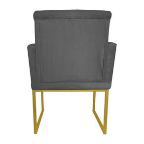 Poltrona Recepção Klara Suede Cinza Base Industrial Dourada - Vallisa Decor