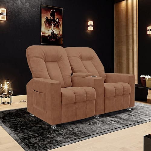 Dimensões do Produto:Largura: 160cmAltura: 110cmProfundidade: 98cmProfundidade Aberto: 148cmAltura do Assento: 45cmAltura do Encosto: 70cmProfundidade do Assento: 50cmLargura do Assento: 52cmLargura dos Braços: Canto 15cm, meio 21cm Características do Produto:Material da Estrutura: Madeira de Reflorestamento de EucaliptoEncosto: Fibra Siliconada e Percinta Elástica Assento: Espuma D-26 Soft e Percinta ElásticaBraço: Enchimento em Espuma D-20Sistemas: Reclinável com Mecanismo Independente de 02 Estágios e 03 Posições. Posição 01 (Sentado), Posição 02 (Leitura) e Posição 03 (Descanso)Sistema de Abertura: Com as Mãos nas Braças, Flexionar o Corpo para Trás e Mãos para Frente.Detalhes: Porta Copo Embutido nos Braços Centrais e Revisteiro Lateral nas BraçasMaterial dos Pés: Madeira Revestidos em Alumínio CromadosRevestimento: VeludoQuantidade de Pés: 6Tipo de Pés: FixoPeso Suportado: 110 Kg por Assento;Conteúdo da Embalagem: 1 Poltrona 2 LugaresNecessita de Montagem: NãoInstruções/Cuidado: Utilizar um pano levemente umedecido com água, seguido de pano seco. Evitar exposição ao sol, para que o produto não sofra alterações na cor. Não limpar com escovas ou produtos abrasivos.