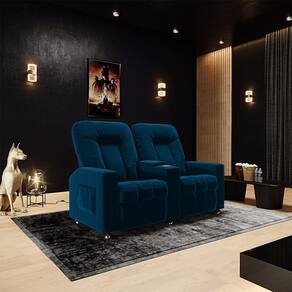 Poltrona Reclinável 2 Lugares Para Sala De Cinema Pequim Veludo Azul Marinho - Gran Belo