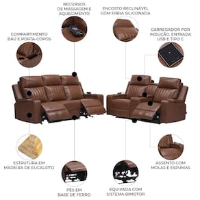 Poltrona Reclinável Cinema 2 e 3 Lugares Baú Usb Pu Moscou Sint Cml Z57 - Mpozenato - Bege | Marrom