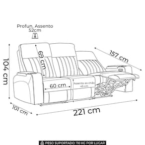 Poltrona 3 Lugares: 221 x 104 x 101 cm.