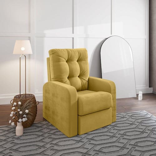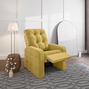 Poltrona do Papai reclinável, produto com alto nível de conforto no assento e encosto que possui enchimento com plumante 100% siliconizado, com um sistema de recline leve e de fácil operação. Tecido com toque aveludado proporcionando uma sensação de levesa e suavidade. Produto de fácil manutenção e manuseio. Excelente opção para compor seus espaços tanto na sala de estar como no quarto. Acompanha Almofadas extras: Não Acompanha Puff: Não Almofada do assento: Não Possui Almofada do encosto: Não Possui Altura do assento até o chão: 45 cm Altura do Encosto: 106 cm Altura dos Pés: 2 cm Ambiente Principal: Sala de Estar Complexidade da Montagem: Média: pode ser montado por mais de uma pessoa e/ou necessite de maior conhecimento para montagem Cor: Mostarda Cor do Produto: Mostarda Design Assinado: Não Enchimento do Braço: Espuma D-26 Encosto para a Cabeça: Não Estampado: Não Extensível: Sim Informações Complementares: Percintas de pneus para maior durabilidade e vida [util do produto.Mecanismo com 3 estagios de regulagem. Itens Inclusos: 1 Poltrona reclinável Linha ou Coleção: Linha Material do Braço: Madeira Pinus, Espuma D26 Tecido Suedd Material dos Pés: Borracha Modelo de Poltrona: Reclinável Necessita Montagem: Sim Origem do Produto: Nacional Peso: 35 kg Possui Percintas Elásticas: Não Possui Pés: 04 Possui Rodízio: Não Profundidade quando extendido: 138 cm Recomendações de Uso, Manutenção e Limpeza: N'ao utilzar alcool ou qualquer outro produto quimico, utilize somente pano seco ou levemente umedecido com agua. Sistema de Montagem: Encaixes Suporta Até (kg): 120 kg Tecido Predominante: Suede Tipo de Assento: Fixo Tipo de Encosto: Regulável Tipo de Poltrona: Do Papai Marca: Nabas Estofados