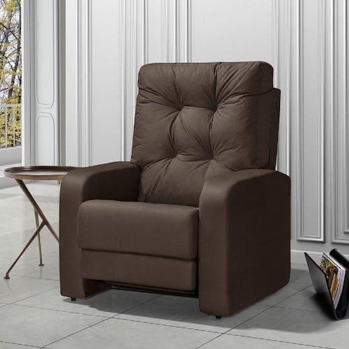 Poltrona do Papai reclinável, produto com alto nível de conforto no assento e encosto que possui enchimento com plumante 100% siliconizado, com um sistema de recline leve e de fácil operação. Tecido com toque aveludado proporcionando uma sensação de levesa e suavidade. Produto de fácil manutenção e manuseio. Excelente opção para compor seus espaços tanto na sala de estar como no quarto. Acompanha Almofadas extras: Não Acompanha Puff: Não Almofada do assento: Fixa Almofada do encosto: Fixa Altura do assento até o chão: 45 cm Altura do Encosto: 106 cm Altura dos Pés: 2 cm Ambiente Principal: Sala de Estar Complexidade da Montagem: Média: pode ser montado por mais de uma pessoa e/ou necessite de maior conhecimento para montagem Cor: Marrom Cor do Produto: Marrom Design Assinado: Não Enchimento do Assento: Espuma D-26 Enchimento do Braço: Espuma D-26 Enchimento do Encosto: Fibra Siliconada Encosto para a Cabeça: Não Estampado: Não Extensível: Sim Firmeza do Assento: Macio Informações Complementares: Percintas de pneus para maior durabilidade e vida [util do produto.Mecanismo com 3 estagios de regulagem. Itens Inclusos: 01 Poltrona reclinavel Linha ou Coleção: Linha Material do Braço: Madeira Pinus, Espuma D26 Tecido Suedd Material dos Pés: Borracha Modelo de Poltrona: Reclinável Necessita Montagem: Sim Origem do Produto: Nacional Peso: 35 kg Possui Percintas Elásticas: Não Possui Pés: 04 Possui Rodízio: Não Profundidade quando extendido: 138 cm Recomendações de Uso, Manutenção e Limpeza: N'ao utilzar alcool ou qualquer outro produto quimico, utilize somente pano seco ou levemente umedecido com agua. Sistema de Montagem: Encaixes Suporta Até (kg): 120 kg Tecido Predominante: Suede Tipo de Assento: Fixo Tipo de Encosto: Regulável Tipo de Espuma do Assento: Espuma Convencional Tipo de Espuma do Encosto: Fibra Siliconada Tipo de Poltrona: Do Papai Marca: Nabas Estofados