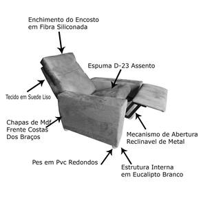 A Poltrona do Papai Nivea foi produzida pensando especialmente nos seus momentos de descanso! Com estrutura feita em eucalipto e revestimento em suede de toque macio, ela reune materiais de ótima qualidade, garantindo assim maior durabilidade ao produto. Possui 2 estágios de reclino que oferece 3 posições, sendo elas: sentado, leitura e descanso. Ideal para você que procura sofisticação e conforto para sua sala de estar!
