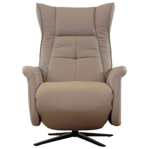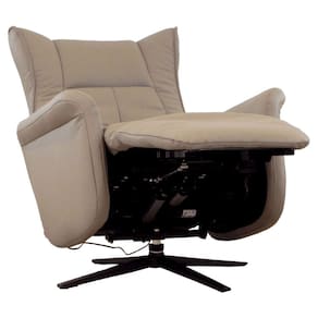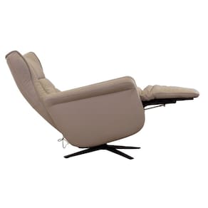 Poltrona Reclinável Eleve Domann Design Couro Natural e PU Cinza Motorizada com Base de Metal