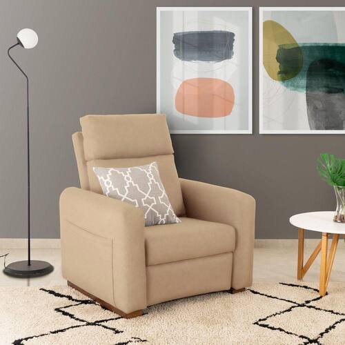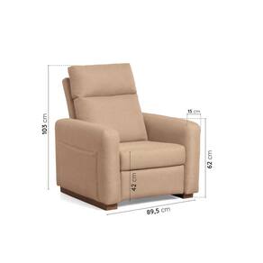 A Poltrona Essense possui um desenho minimalista, sofisticado e acolhedor com formas mais arredondadas que são um convite a desfrutar momentos de relaxamento e a diminuir o ritmo. Seu assento é reclinável, espuma D28 e persintas elásticas de excelente qualidade garantem conforto e resistência. As almofadas do encosto são preenchidas com 100% de fibra siliconada. A estrutura é fabricada em madeira de eucalipto, seca e imunizada e os pés em madeira maciça com acabamento em verniz fosco. Além disso, possui bolso lateral porta objetos para que seu livro, controle remoto, tablet etc, estejam sempre ao alcance das suas mãos. Acompanha Almofadas extras: Não Acompanha Puff: Não Almofada do assento: Fixa Almofada do encosto: Fixa Altura do assento até o chão: 45 cm Altura do Encosto: 71 cm Altura dos Pés: 5 cm Ambiente Principal: Sala de Estar Cor: Bege Cor do Produto: Bege Design Assinado: Não Enchimento do Assento: Espuma D-28 Enchimento do Braço: Espuma D-12 Enchimento do Encosto: Fibra Siliconada Encosto para a Cabeça: Não Estampado: Não Extensível: Sim Firmeza do Assento: Médio Itens Inclusos: Poltrona Reclinável Essence Linha ou Coleção: Essence Manual de Montagem e Instalação: https://product-hub-prd.madeiramadeira.com.br/866308/documents/ae59ec54-288a-4d7b-ae0b-376c8693cf495104esc01amanualdeinstrues.pdf Material do Braço: Madeira Eucalipto Material dos Pés: Madeira Eucalipto Modelo de Poltrona: Reclinável Necessita Montagem: Não Origem do Produto: Nacional Peso: 35 kg Possui Percintas Elásticas: Sim Possui Pés: 02 Possui Rodízio: Não Profundidade quando extendido: 148 cm Recomendações de Uso, Manutenção e Limpeza: Use somente água e sabão neutro na proporção 19:1. Para limpar, utilize pano branco umedecido em água morna e sabão neutro, removendo qualquer resíduo de sabão ao final da limpeza; Não use produtos químicos, eles podem dani?car o revestimento; Quando for necessário lavar os tecidos, faça somente lavagem a seco em empresas especializadas. Suporta Até (kg): 120 kg Tecido Predominante: Poliéster Tipo de Assento: Fixo Tipo de Encosto: Regulável Tipo de Espuma do Assento: Espuma Convencional Tipo de Poltrona: Do Papai Ean: 7909903398081
