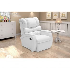 Poltrona Reclinável Wall, ou seja, essa Poltrona pode ficar afastada da parede somente 5cm. Quando ela reclinar não precisa afastar da parede, com ela fechada você pode girar a poltrona em 360 graus e ao mesmo tempo balançar, a peseira é independente do encosto, ou seja, você pode ficar com as pernas levantadas, com a coluna ereta, e se quiser pode deitar o encosto. Revestimento em couro ecológico de alta durabilidade, encosto enchido em 100% fibra de silicone para proporcionar um ótimo conforto.
