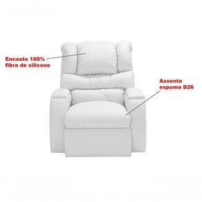 Material: A Poltrona Reclinável Imperial tem o sistema Wall e balanço, estrututa em madeira 25mm e mecanismo em aço. O encosto possui enchimento em fibra de silicone e o assento em espuma D26. Já o revestimento é em corano.