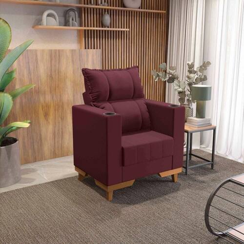 Recoberta com tecido veludo bordô, garante um toque suave, além de muita beleza ao ambiente. Outro destaque são os porta-copos nos encostos de braço, proporcionando praticidade e um descanso mais completo. Perfeita para compor desde a sala de estar, o quarto ou escritório, seu design compacto e moderno irá conquistar você. Aproveite o máximo de conforto e beleza que a Poltrona Florenza Kappesberg oferece e garanta a sua.