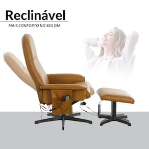 A Poltrona Reclinável com Massagem, Aquecimento e Apoio para os Pés oferece conforto para uso no dia a dia. Possui funções de aquecimento e massagem que auxiliam no relaxamento após períodos prolongados de uso. O encosto reclinável permite ajuste de posição conforme a necessidade, enquanto o apoio para os pés complementa o uso, proporcionando maior comodidade.