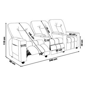 Que tal criar seu próprio home cinema? Aqui, vamos mostrar como você pode montar o seu! Com o local adequado, alguns itens decorativos e uma poltrona ideal, você garantirá um espaço confortável e imersivo. O primeiro passo é investir em equipamentos de alta qualidade! Olha só que lindeza a nossa Poltrona Reclinável Para Cinema 3 Lugares. Ela foi projetada para proporcionar máximo conforto e funcionalidade, esta poltrona é a escolha ideal para quem busca relaxamento, estilo e uma experiência de cinema privada. Seu mecanismo reclinável permite ajustar a poltrona conforme suas necessidades, independente, com 2 estágios e 3 posições ajustáveis, seja para assistir a um filme, ler um livro ou simplesmente descansar. Com capacidade para suportar até 110 kg cada oferecendo segurança e estabilidade ao consumidor. O revestimento em Veludo oferece um toque de sofisticação e conforto, enquanto a estrutura em madeira de eucalipto garante resistência e durabilidade. O sistema de abertura fácil permite ajustar a poltrona sem esforço: basta colocar as mãos nos braços, inclinar o corpo para trás e empurrar as mãos para frente. O encosto e o assento são sustentados por percintas elásticas. Eles são preenchidos com fibra siliconada e espuma D-26 Soft, respectivamente, para um conforto adicional. Os Encosto e Assento da poltrona é reclinável e nos braços contêm enchimento em espuma D-20, proporcionando um apoio suave e confortável. O assento (fixo) e o apoio de Pés Retrátil proporcionam um apoio perfeito para suas pernas, aumentando o conforto. O encosto reclinável, possibilita ajustá- lo para a posição ideal de relaxamento. Já os pés (fixos) foram feitos em madeira e revestidos em alumínio cromado, adicionando um toque de elegância ao produto. E tem mais!! Ela contém Porta Copos Embutido no Braço e um revisteiro lateral prático nas braças com um bolso prático para armazenar revistas e livros, mantendo tudo ao seu alcance. Com um design moderno e prático, esta poltrona se tornará o destaque da sua sala de estar. Afinal, sua casa merece a Poltrona Reclinável Para Cinema 3 Lugares. Adquira a sua agora mesmo e transforme sua sala de estar em um verdadeiro cinema!