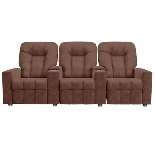 Que tal criar seu próprio home cinema? Aqui, vamos mostrar como você pode montar o seu! Com o local adequado, alguns itens decorativos e uma poltrona ideal, você garantirá um espaço confortável e imersivo. O primeiro passo é investir em equipamentos de alta qualidade! Olha só que lindeza a nossa Poltrona Reclinável Para Cinema 3 Lugares. Ela foi projetada para proporcionar máximo conforto e funcionalidade, esta poltrona é a escolha ideal para quem busca relaxamento, estilo e uma experiência de cinema privada. Seu mecanismo reclinável permite ajustar a poltrona conforme suas necessidades, independente, com 2 estágios e 3 posições ajustáveis, seja para assistir a um filme, ler um livro ou simplesmente descansar. Com capacidade para suportar até 110 kg cada oferecendo segurança e estabilidade ao consumidor. O revestimento em Veludo Terracota oferece um toque de sofisticação e conforto, enquanto a estrutura em madeira de eucalipto garante resistência e durabilidade. O sistema de abertura fácil permite ajustar a poltrona sem esforço: basta colocar as mãos nos braços, inclinar o corpo para trás e empurrar as mãos para frente. O encosto e o assento são sustentados por percintas elásticas. Eles são preenchidos com fibra siliconada e espuma D-26 Soft, respectivamente, para um conforto adicional. Os Encosto e Assento da poltrona é reclinável e nos braços contêm enchimento em espuma D-20, proporcionando um apoio suave e confortável. O assento (fixo) e o apoio de Pés Retrátil proporcionam um apoio perfeito para suas pernas, aumentando o conforto. O encosto reclinável, possibilita ajustá- lo para a posição ideal de relaxamento. Já os pés (fixos) foram feitos em madeira e revestidos em alumínio cromado, adicionando um toque de elegância ao produto. E tem mais!! Ela contém Porta Copos Embutido no Braço e um revisteiro lateral prático nas braças com um bolso prático para armazenar revistas e livros, mantendo tudo ao seu alcance. Com um design moderno e prático, esta poltrona se tornará o destaque da sua sala de estar. Afinal, sua casa merece a Poltrona Reclinável Para Cinema 3 Lugares. Adquira a sua agora mesmo e transforme sua sala de estar em um verdadeiro cinema!