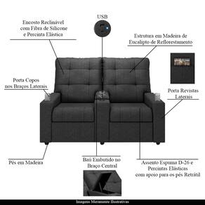 Diferenciais: Apoio de pés retrátil, bolso lateral para revistas e livros, Porta Copos Embutido nos Braços Laterais e Baú porta objetos